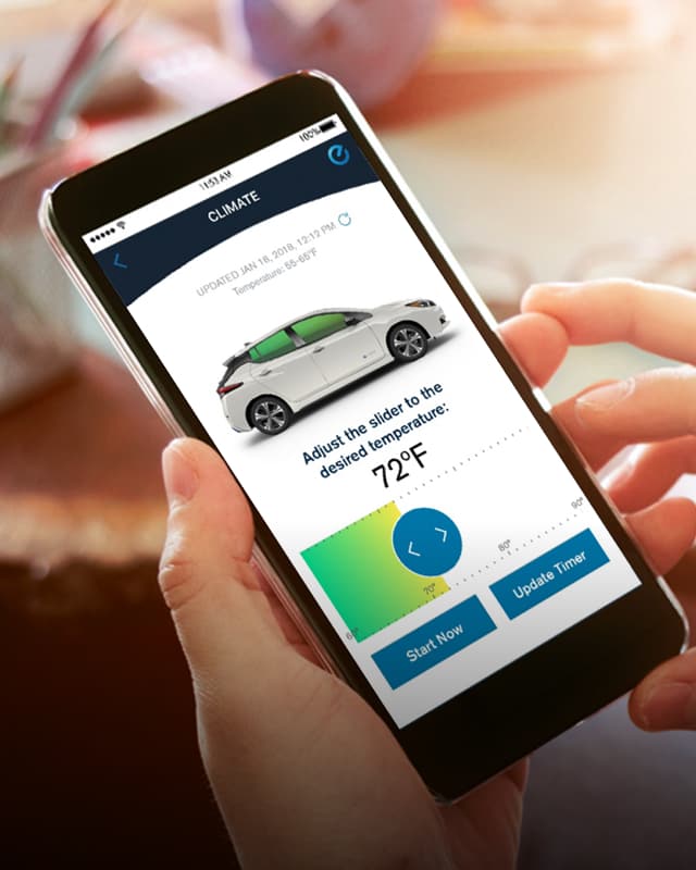 Get a start from anywhere. Using the NissanConnect EV App and your compatible device you can get the LEAF prepared for its next adventure from almost anywhere. [[200]]